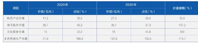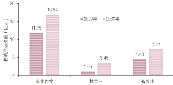 ▲哈巴河县2020年和2030年生态系统物质产品价值